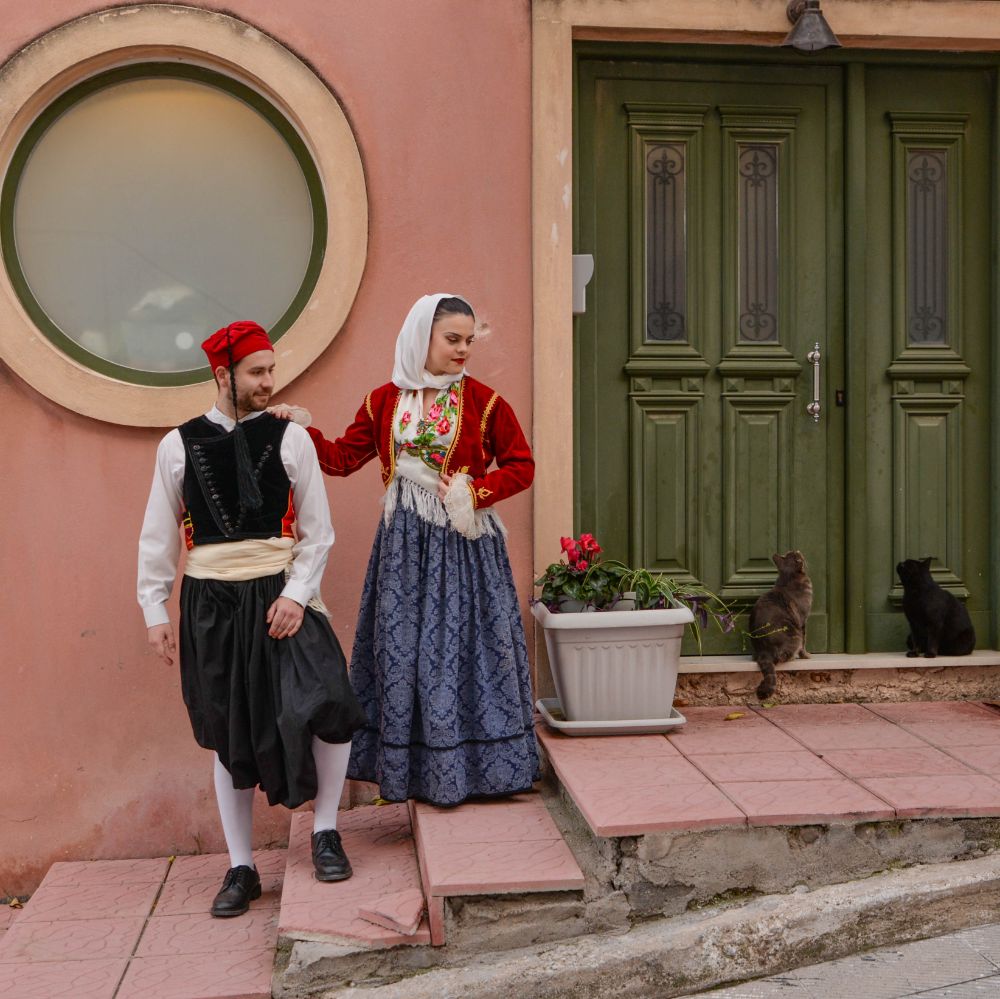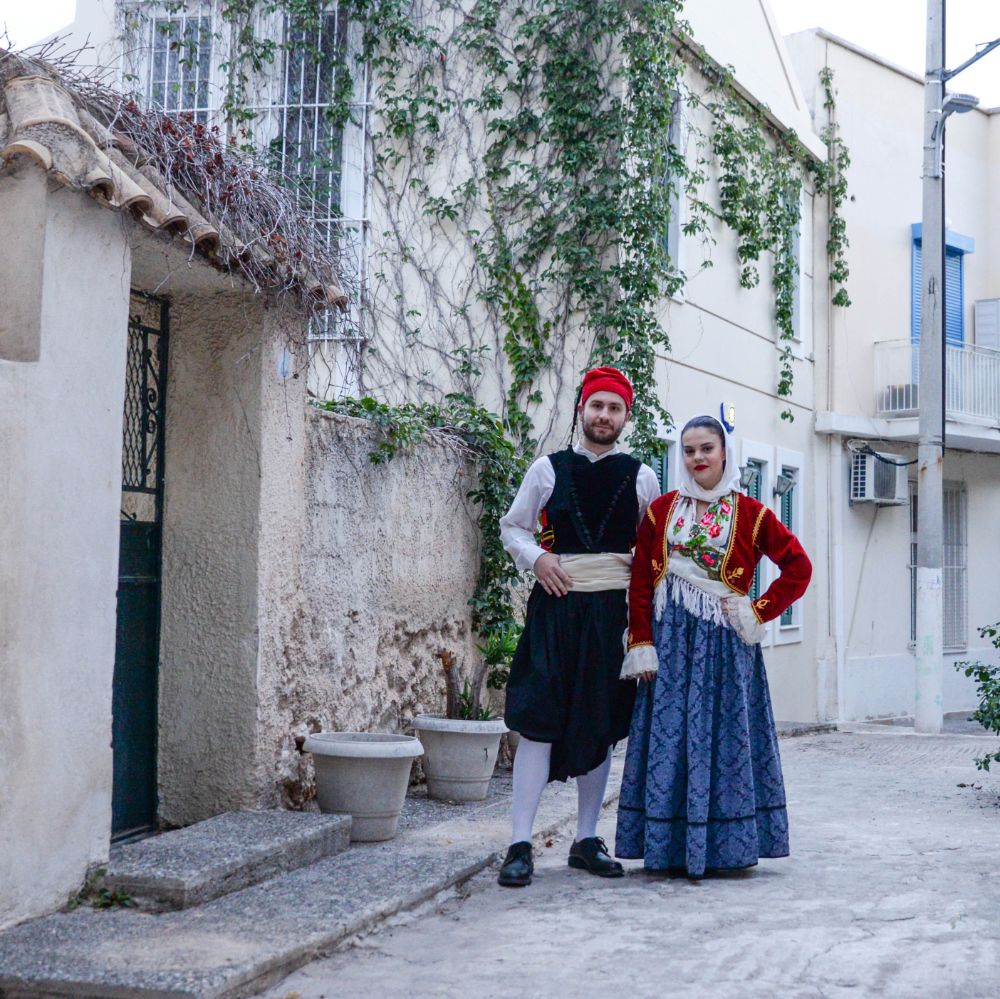 Παραδοσιακές φορεσιές των Κυθήρων που φορούν οι νεαροί Επτανήσιοι Μαντώ Καλοκαιρινού και Γιώργος Στάθης από την φωτογράφιση με τίτλο ‘’Μες το Τσιρίγο τ΄ όμορφο γεννήθηκ’ Αφροδίτη’’.