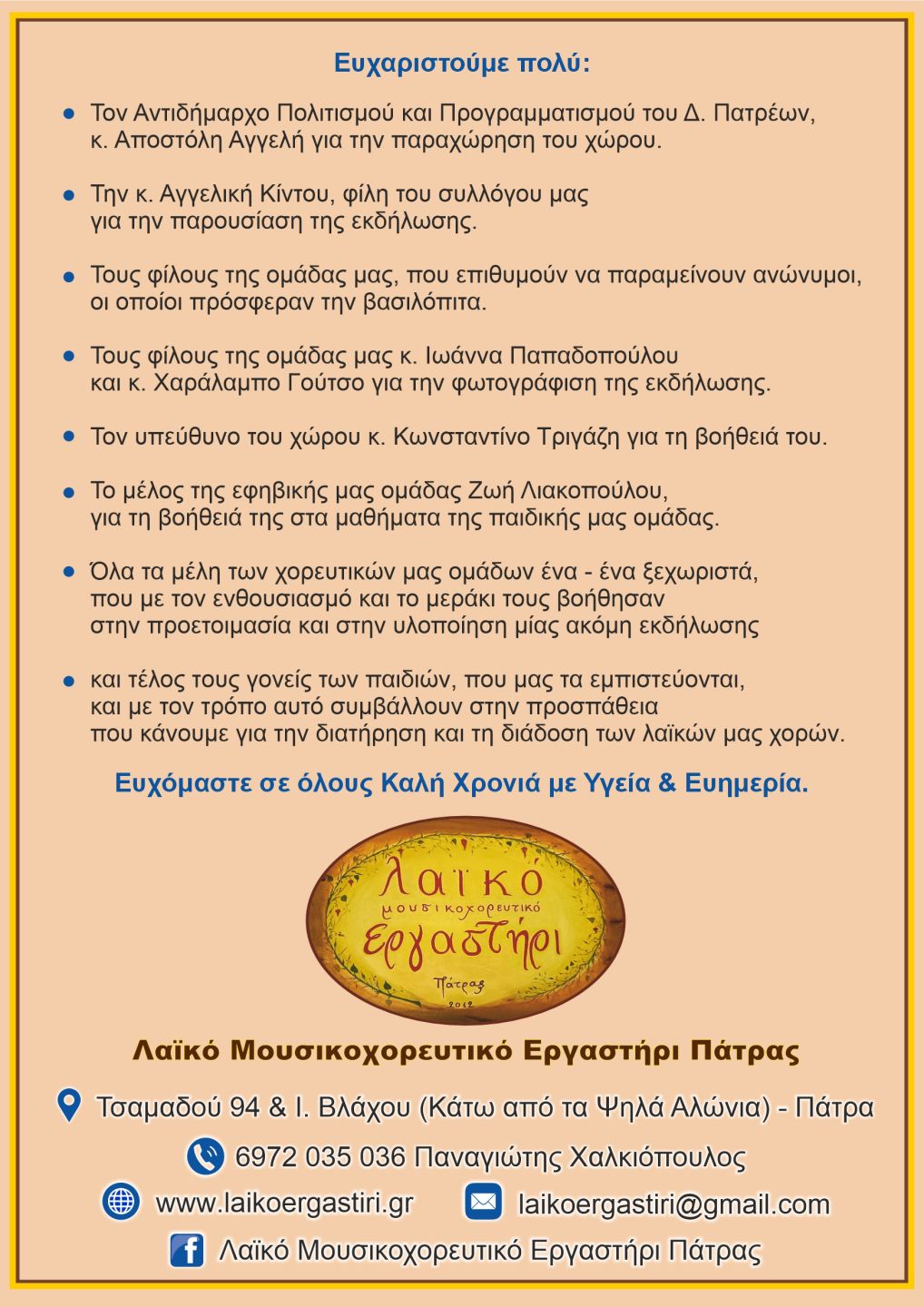 Εμείς τους ευχαριστούμε θερμά και τους συγχαίρουμε όλους και όλες για τη συμβολή τους στην πραγματοποίηση αυτής της όμορφης εκδήλωσης.
